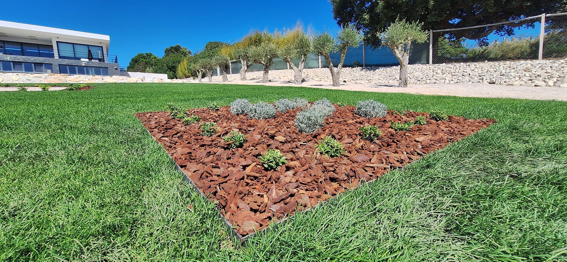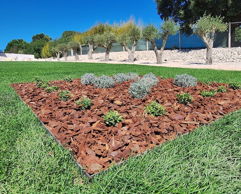 Realizamos a plantação de árvores, arbustos e plantas ornamentais, bem como a aplicação de seixo, casca de pinheiro e outros materiais decorativos, garantindo um acabamento cuidado e profissional.